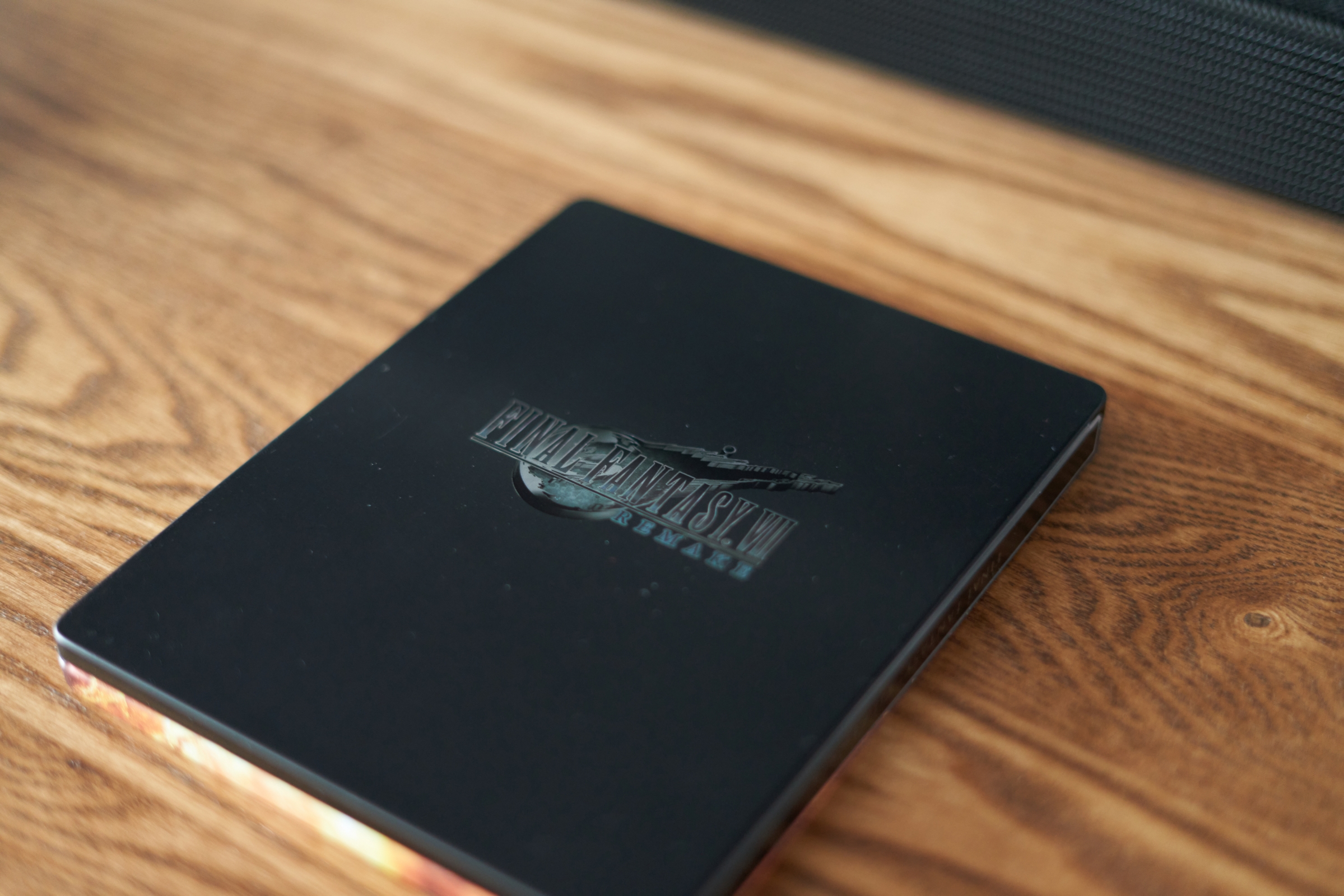 스틸북 케이스입니다. 의외로 주인공인 클라우드가 아니라 빌런인 세피로스가 앞면을 당당히 차지했습니다. 뒷면은 검은 배경에 로고가 있는 심플한 배경인데, 이쪽이 조금 더 마음에 듭니다. 클라우드, 바레트, 티파, 에어리스 등 주인공들이 한 쪽에 있었어도 괜찮았을 것 같네요.